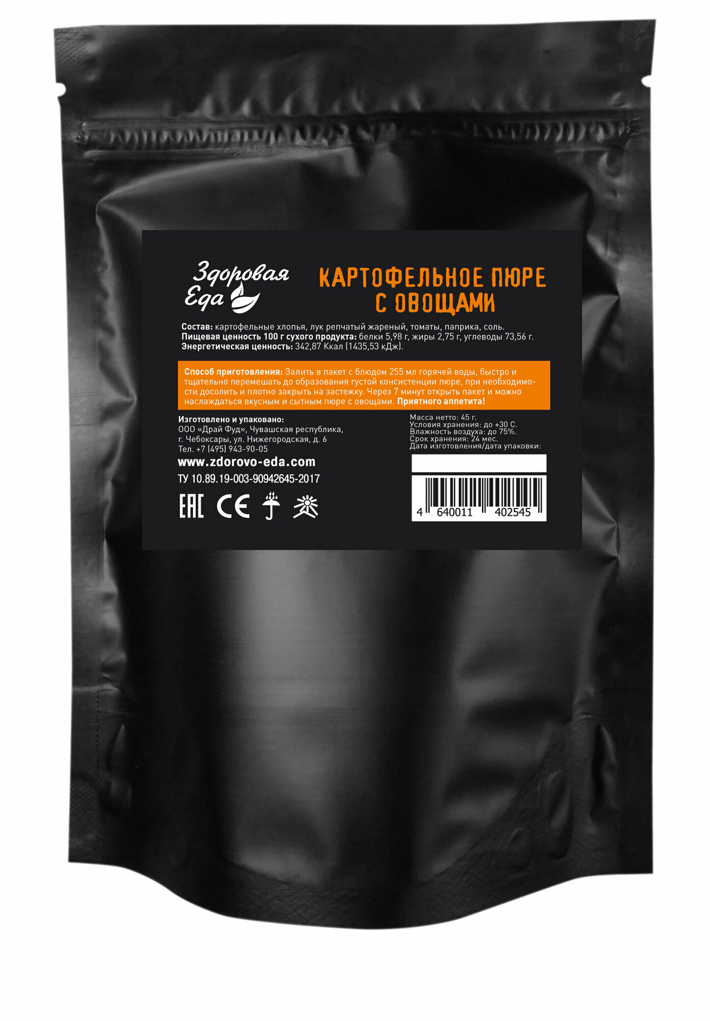 Купить Пюре картофельное Здоровая еда с овощами готовое сублимированное блюдо для похода, 45 г