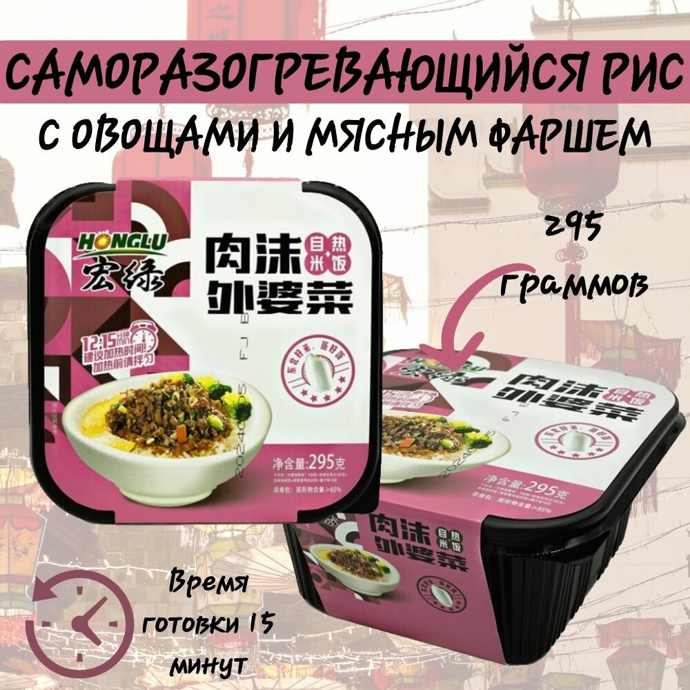 Рис саморазогревающийся с овощами и мясным фаршем, 295 гр., Honglu интересное: