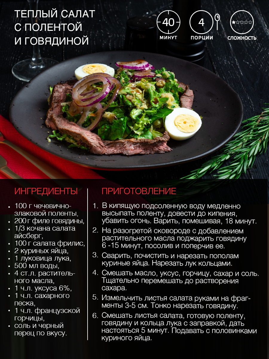 | Способ приготовления | В кипящую подсоленную воду медленно высыпать смесь, постоянно помешивая (из расчета на 100 г смеси 0,5-1,5 л воды в зависимости от того, какое блюдо Вы готовите и какую консистенцию хотите получить). Готовить 10-15 минут на среднем огне, помешивая. Оставить под крышкой еще на пару минут. |