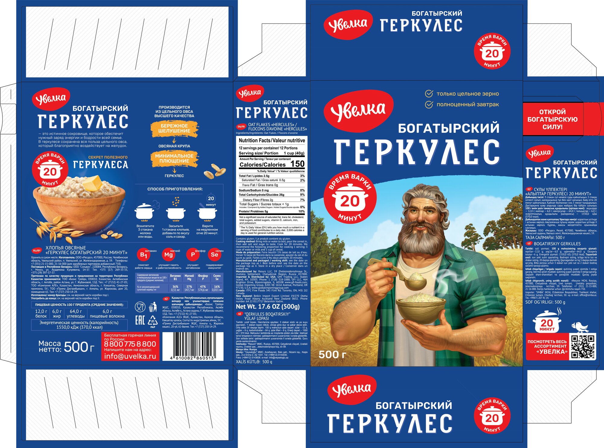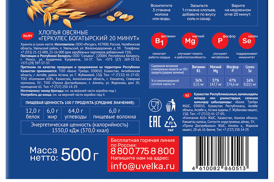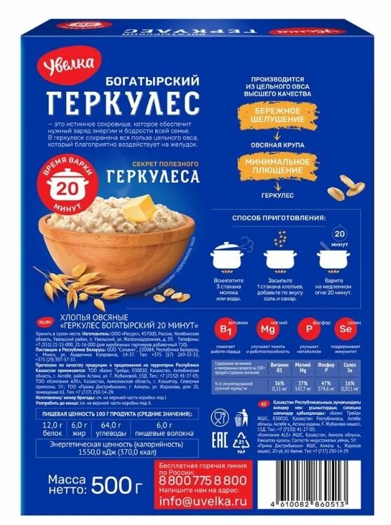 Хлопья Увелка овсяные Геркулес Богатырский (20 мин) 500г интересное: