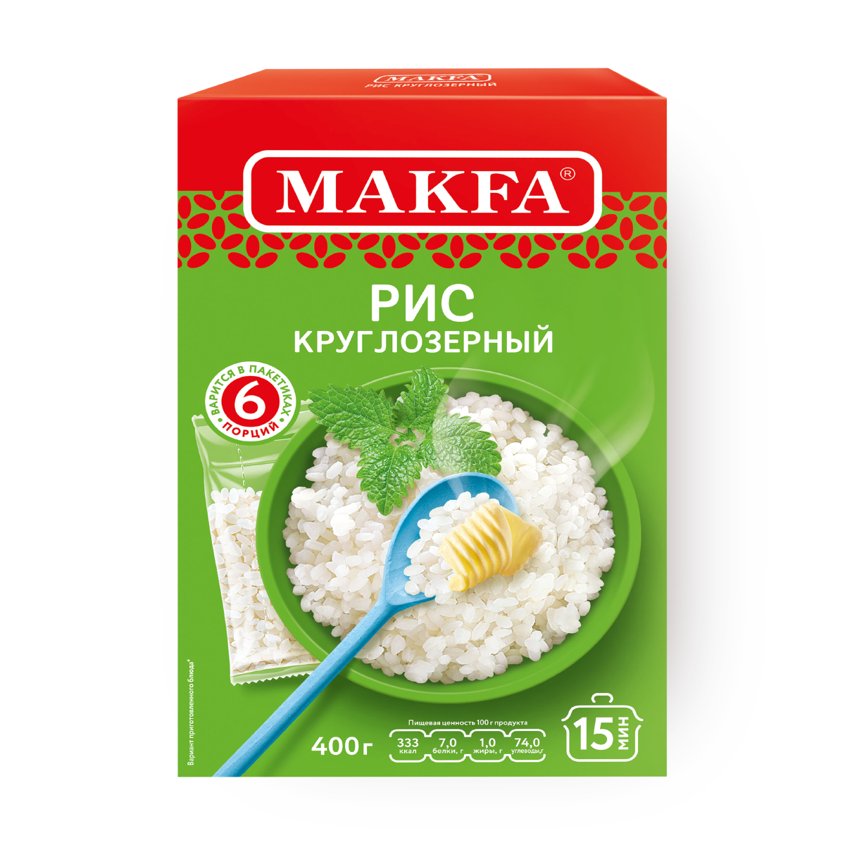 Рис круглозерный Макфа шлифованный 400г, 6 пакетиков х 66,5г интересное: