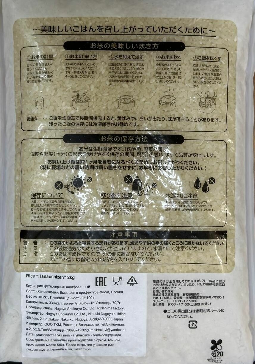 Рис японский для суши Hanaechizen, Япония, 2 кг интересное: