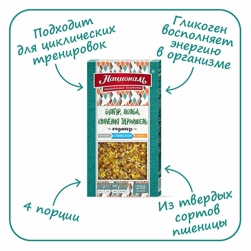 Националь Смесь для гарнира Гликоген Булгур, полба, копченая вермишель 250 г интересное: