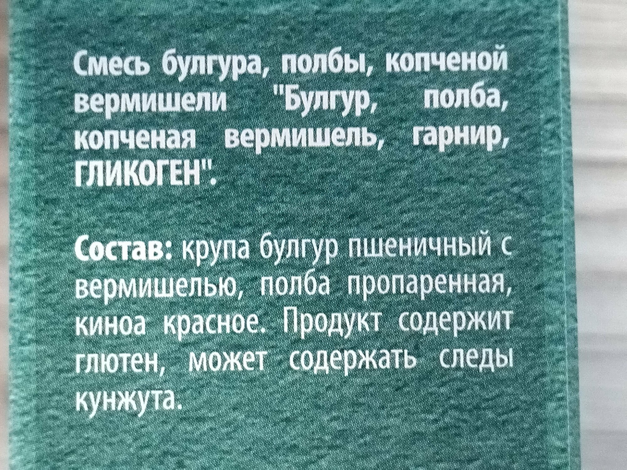 | Сырье | булгур, киноа, полба |