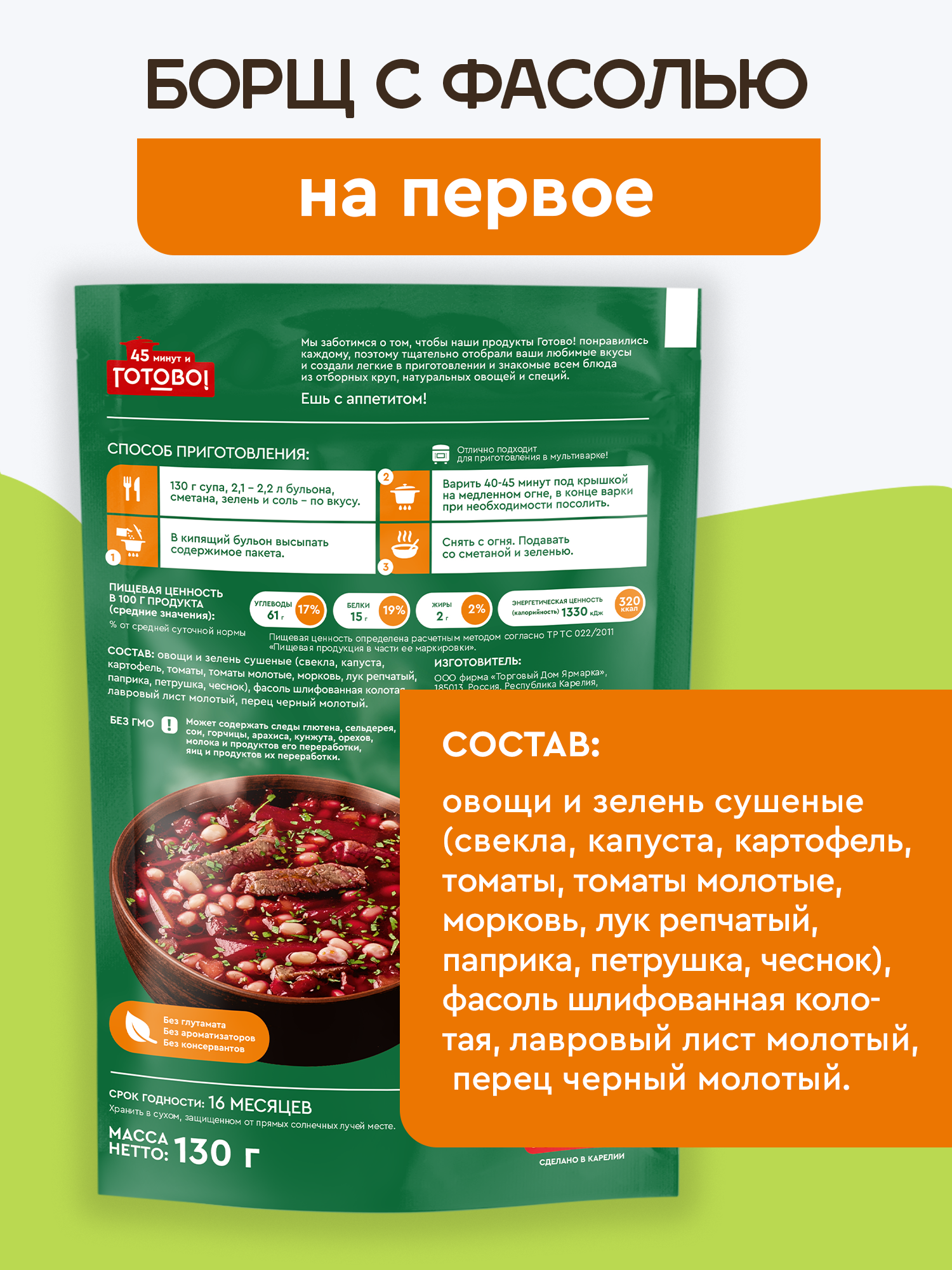 Готово Суп борщ с фасолью, 130 г, 12 шт интересное: