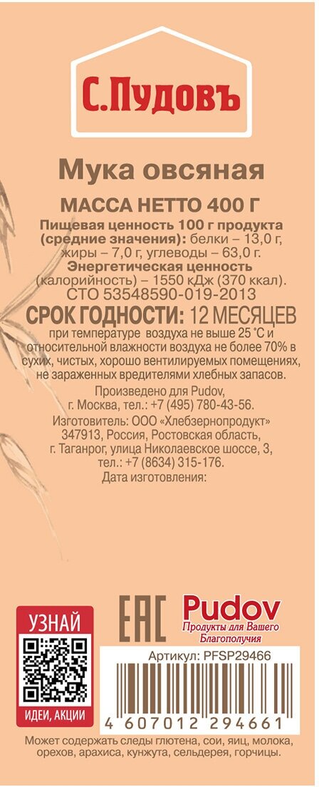 Мука овсяная С.Пудовъ, 400 г интересное: