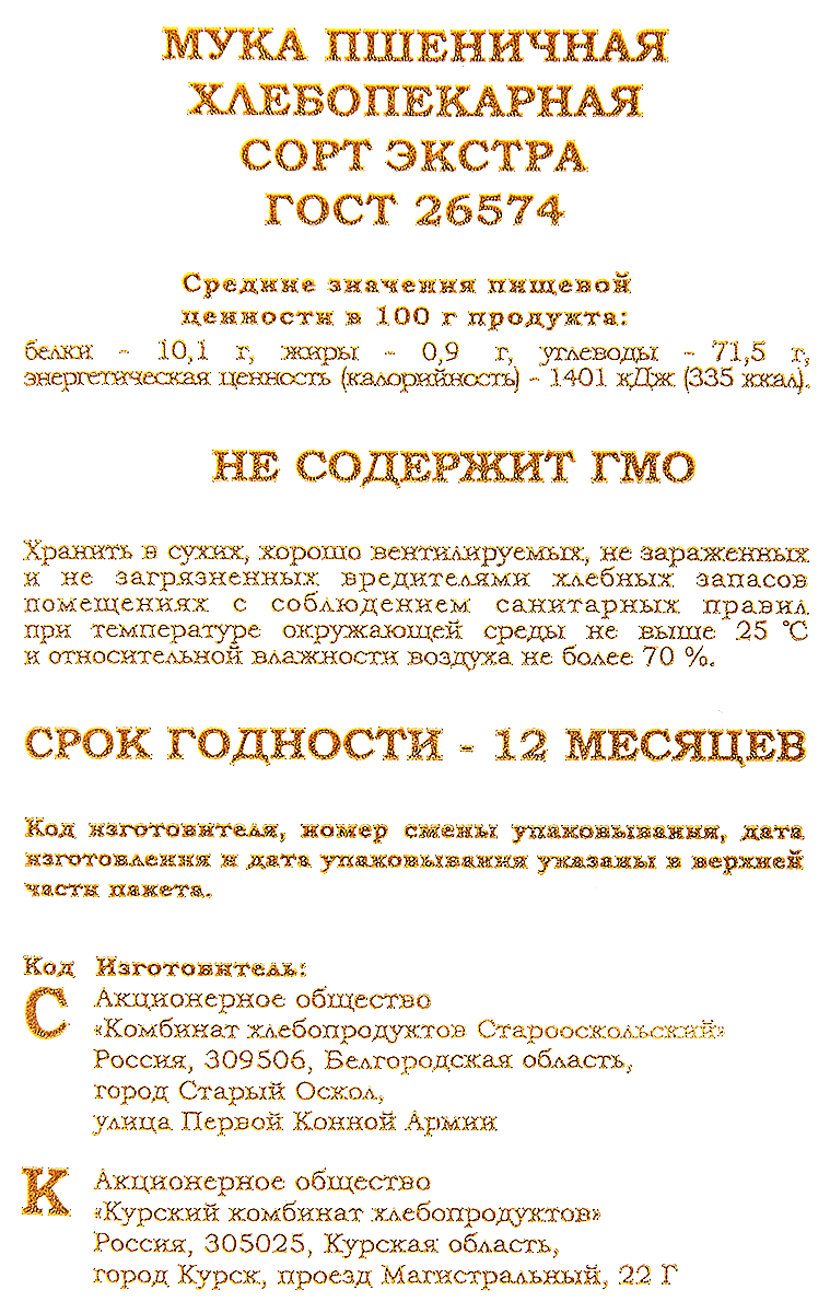 | Производитель | Комбинат хлебопродуктов Старооскольский |