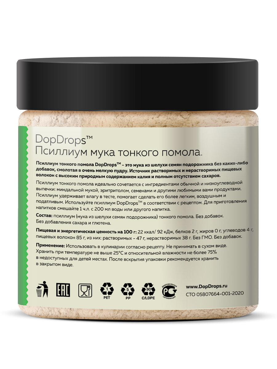 Псиллиум мука DopDrops клетчатка для похудения и очищения 400 г интересное: