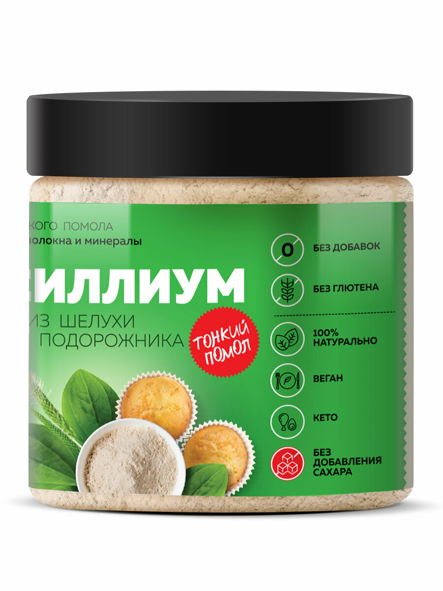 | Состав | псиллиум (мука из шелухи семян подорожника) тонкого помола. Пищевых волокон 85 г, из них: растворимых - 47 г, нерастворимых - 38 г. Без добавления сахара и глютена. Без ГМО. Без добавок. |