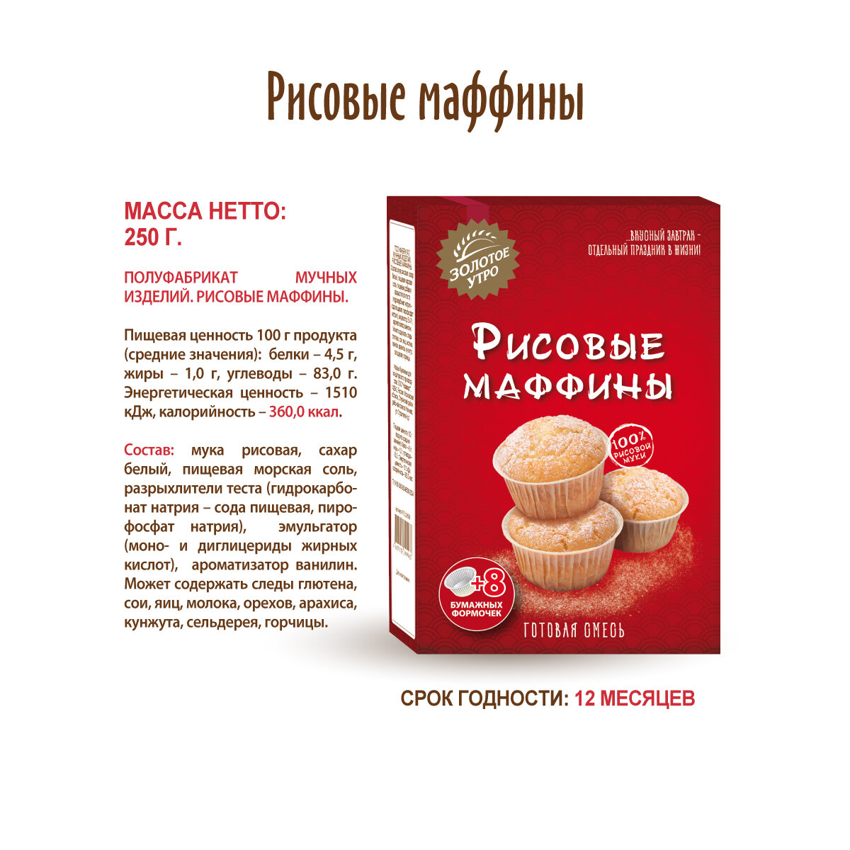Смесь для выпечки Рисовые маффины Золотое утро, 250 г интересное: