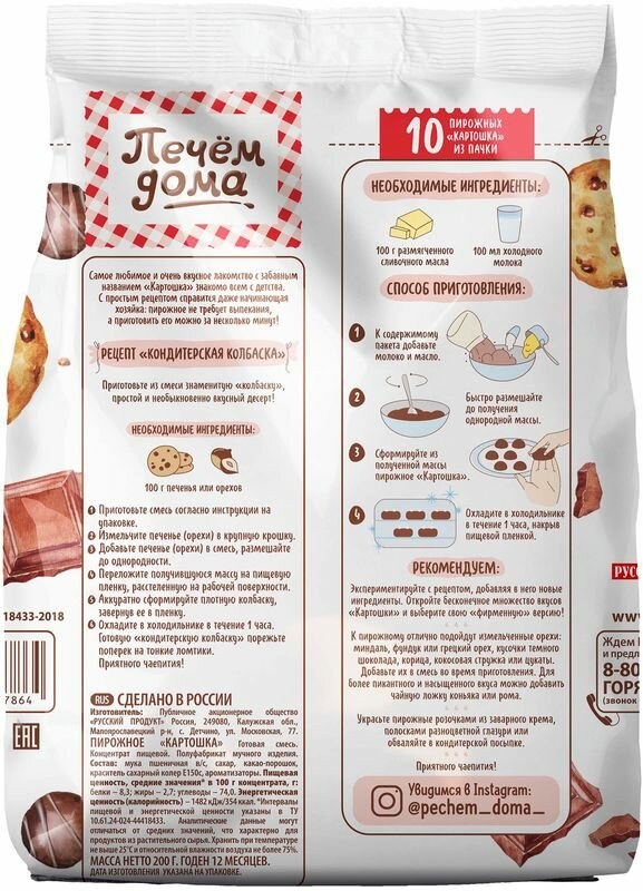 Ниже Вы можете прочитать отзывы на Смесь готовая Пирожное "Картошка" 200г х 8 уп, Печем дома, ознакомится с подробными характеристиками, посмотреть интересные обзоры и фотографии на Смесь готовая Пирожное "Картошка" 200г х 8 уп, Печем дома.