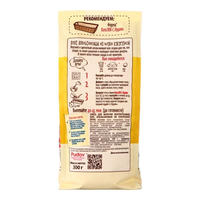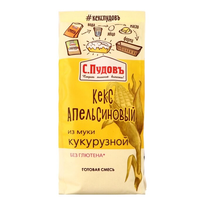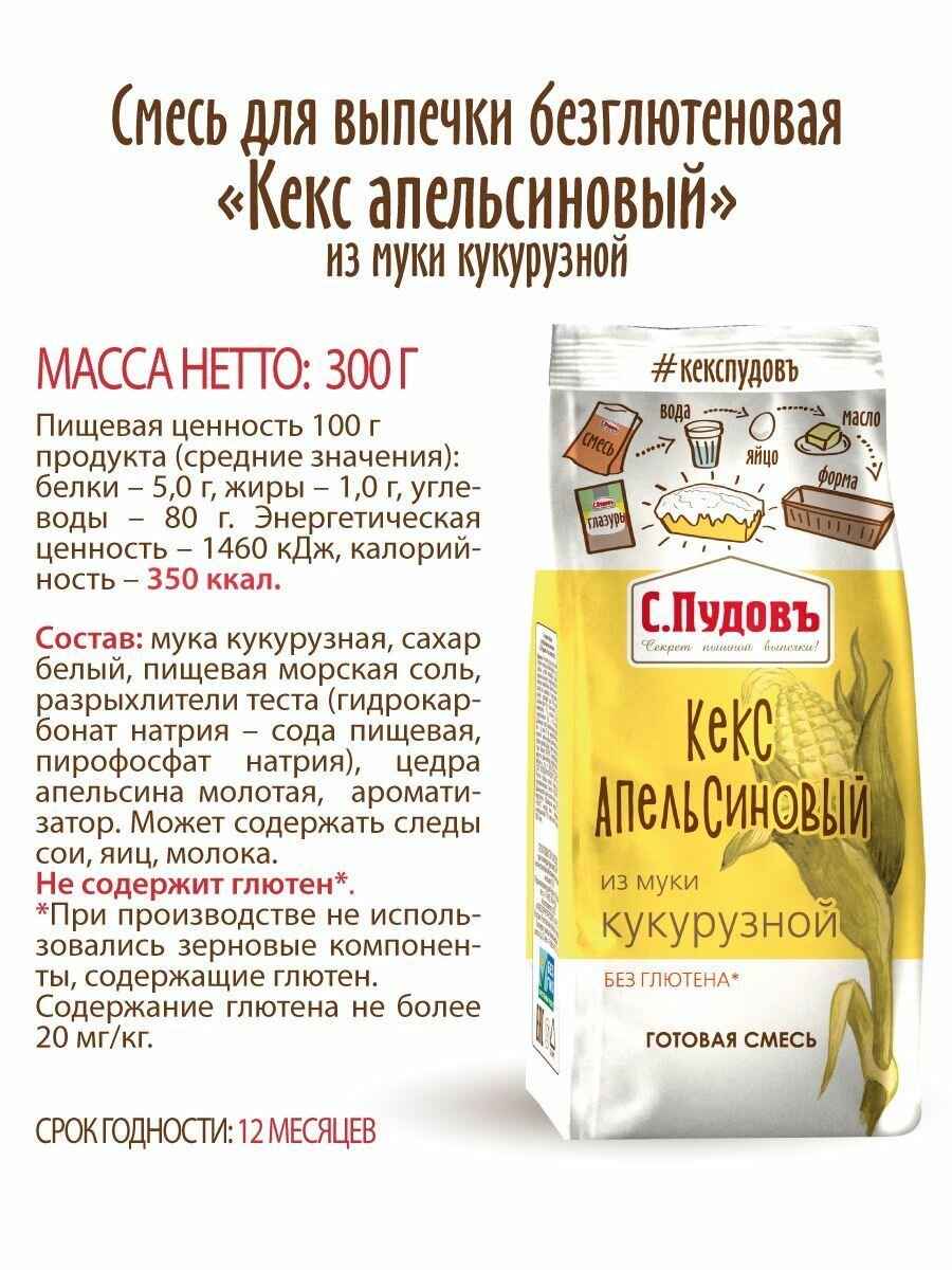Смесь для выпечки "Кекс апельсиновый из кукурузной муки" С.Пудовъ, 300 грамм. интересное: