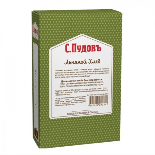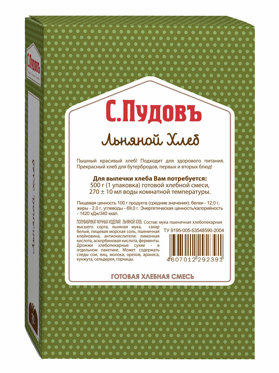 С.Пудовъ Смесь для выпечки хлеба Льняной хлеб, 0.5 кг