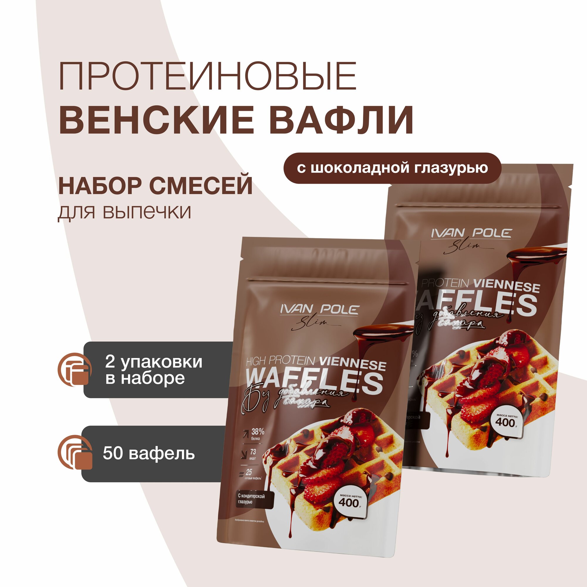 Набор 2 шт Протеиновые Венские вафли без сахара, смесь для выпечки Иван-поле, 2 шт по 400г