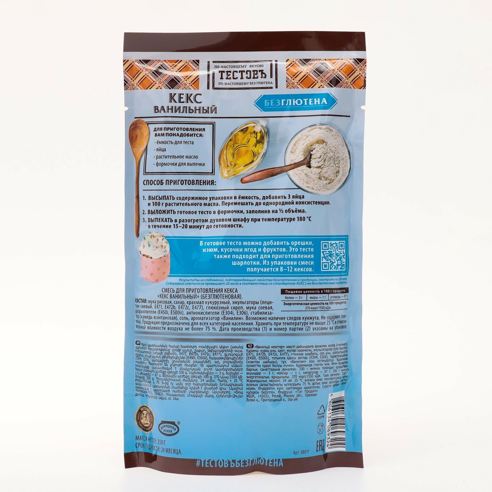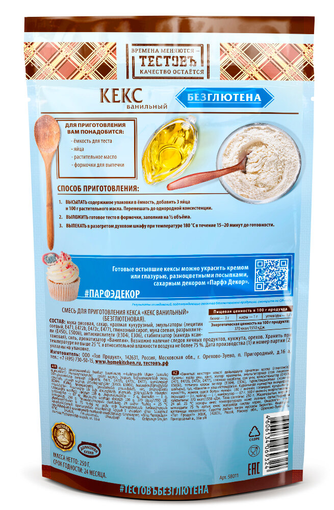 Смесь сухая для приготовления Кекс ванильный без глютена Тестовъ 250 г интересное: