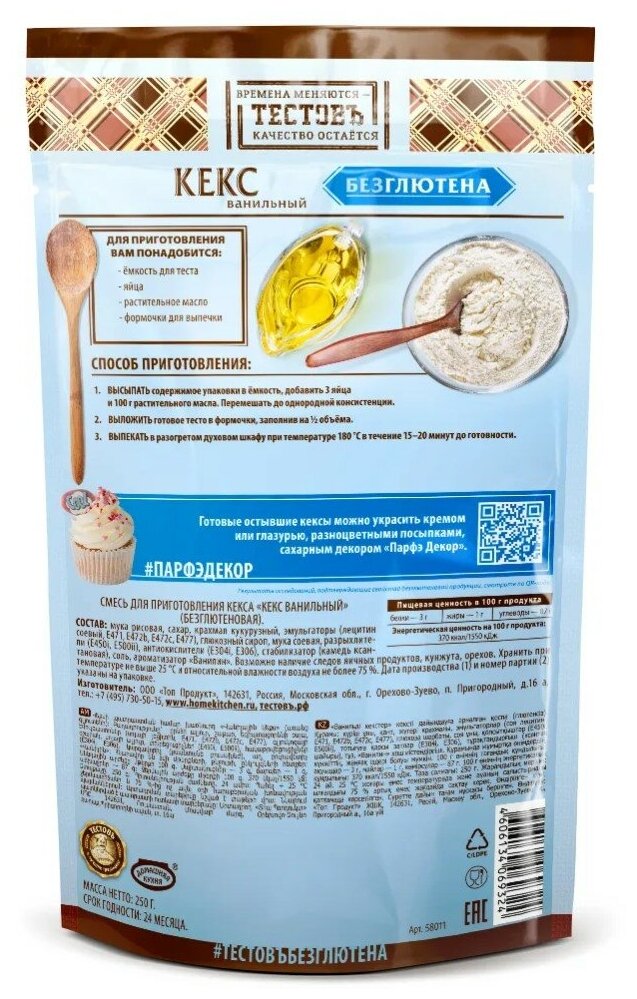 Ниже Вы можете прочитать отзывы на Смесь сухая для приготовления Кекс ванильный без глютена Тестовъ 250 г, ознакомится с подробными характеристиками, посмотреть интересные обзоры и фотографии на Смесь сухая для приготовления Кекс ванильный без глютена Тестовъ 250 г.