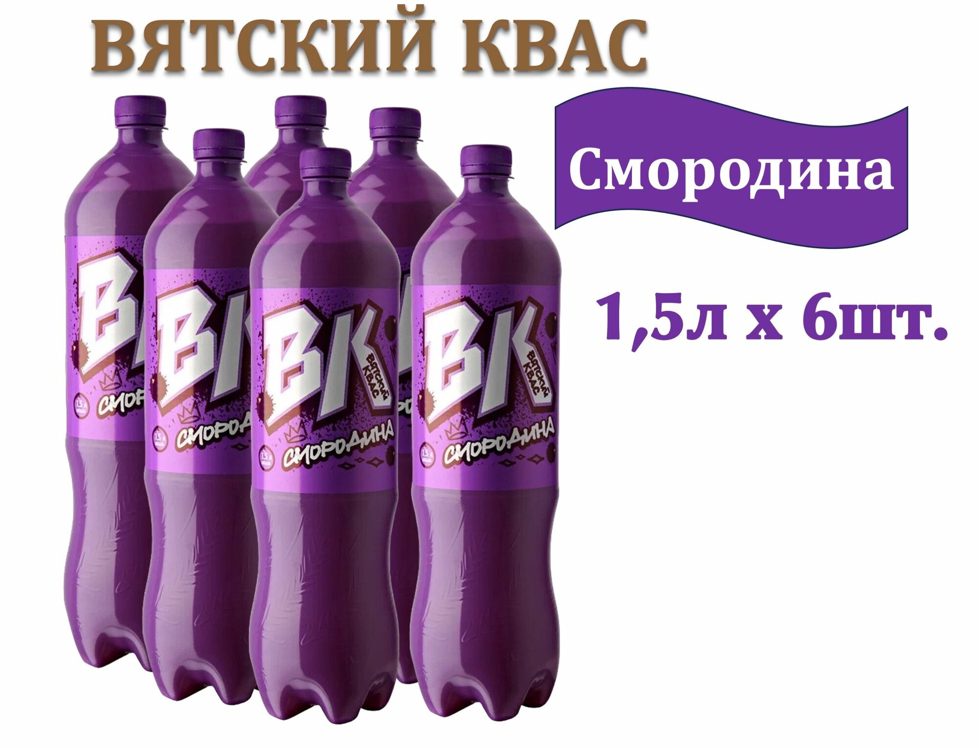 Купить Квас "Вятич" Вятский ВК Смородина 1,5 л х 6 бутылок, пэт
