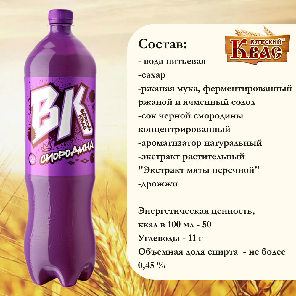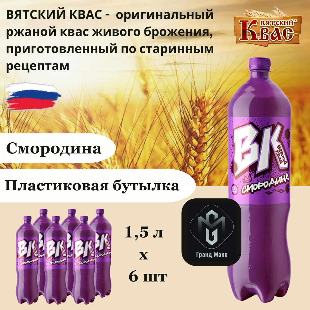 Квас "Вятич" Вятский ВК Смородина 1,5 л х 6 бутылок, пэт интересное: