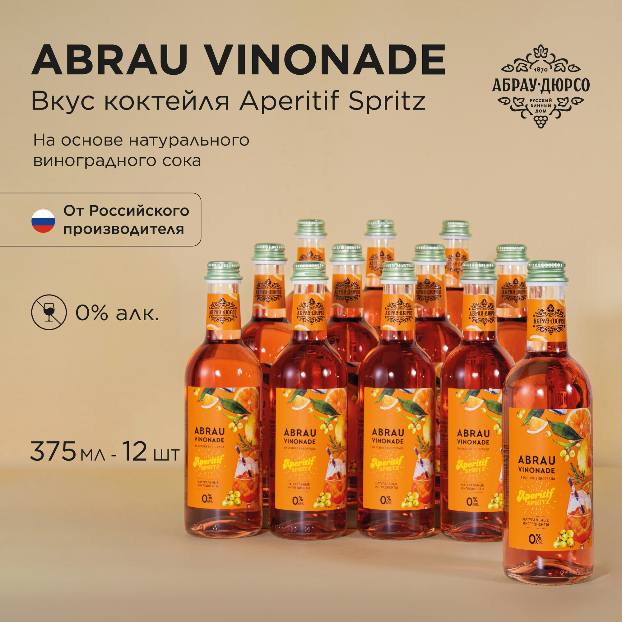 Купить Безалкогольный напиток лимонад Абрау Винонад Аперитив-Спритц 0,375 л, 12 бут