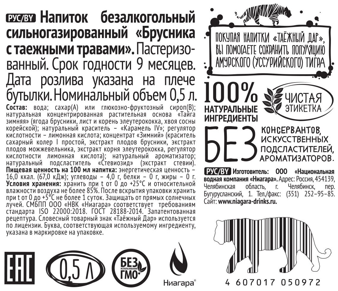 Таежный Дар "Брусника с таежными травами" Напиток безалкогольный сильногазированный на основе таежных трав 12*0,5 интересное: