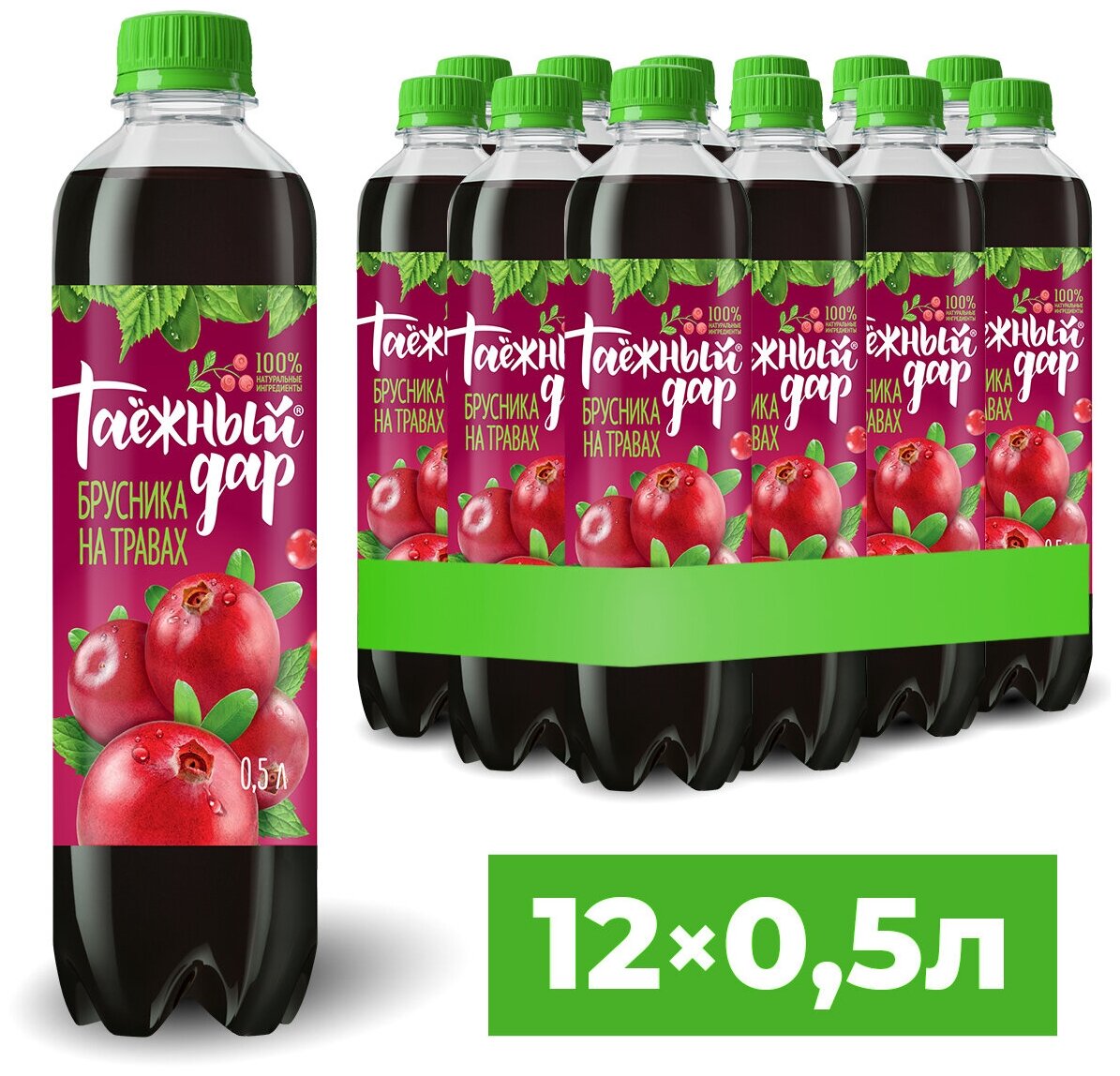 Купить Таежный Дар "Брусника с таежными травами" Напиток безалкогольный сильногазированный на основе таежных трав 12*0,5