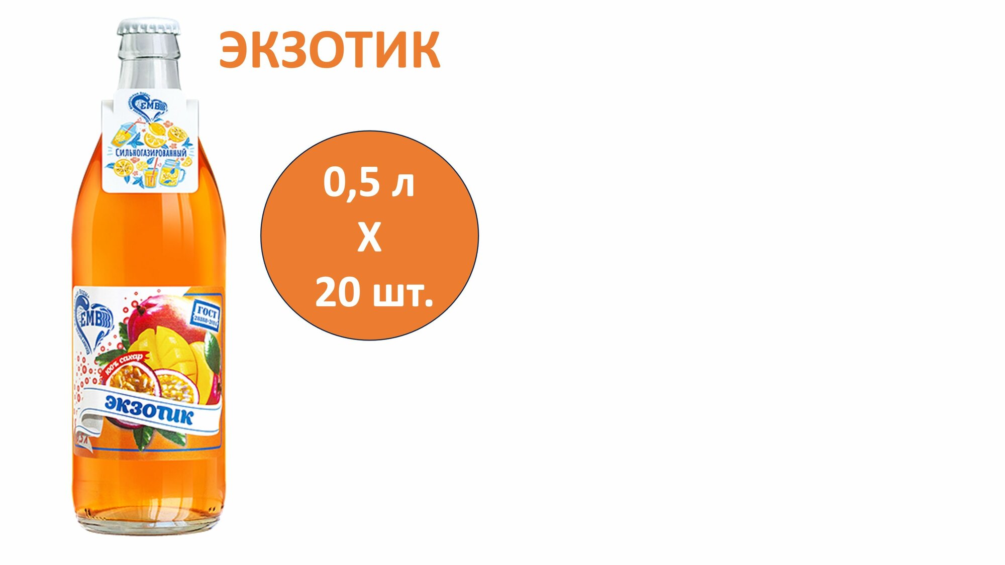 Лимонад ЕМВ Экзотик 0,5 л х 20 бутылок, сильногазированный, стеклянная бутылка