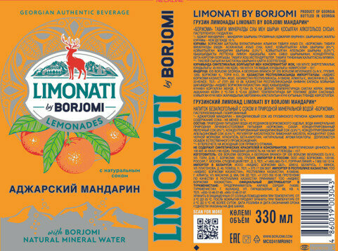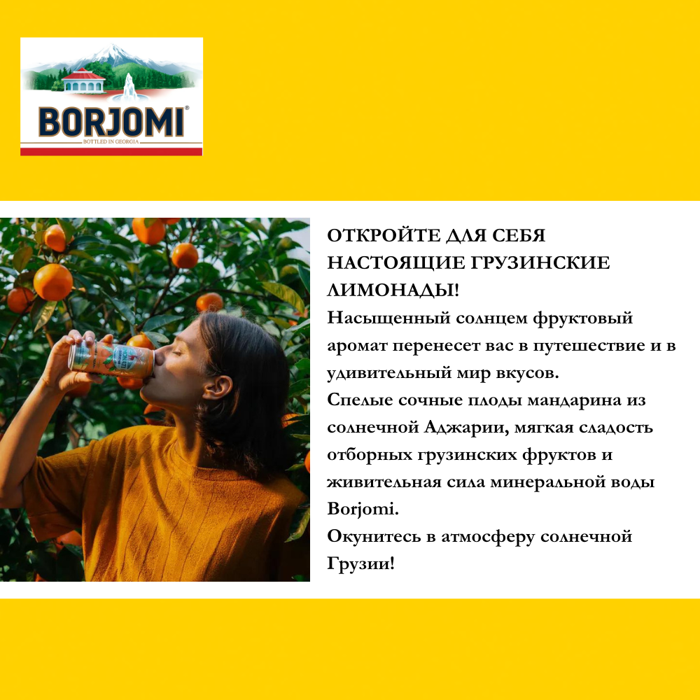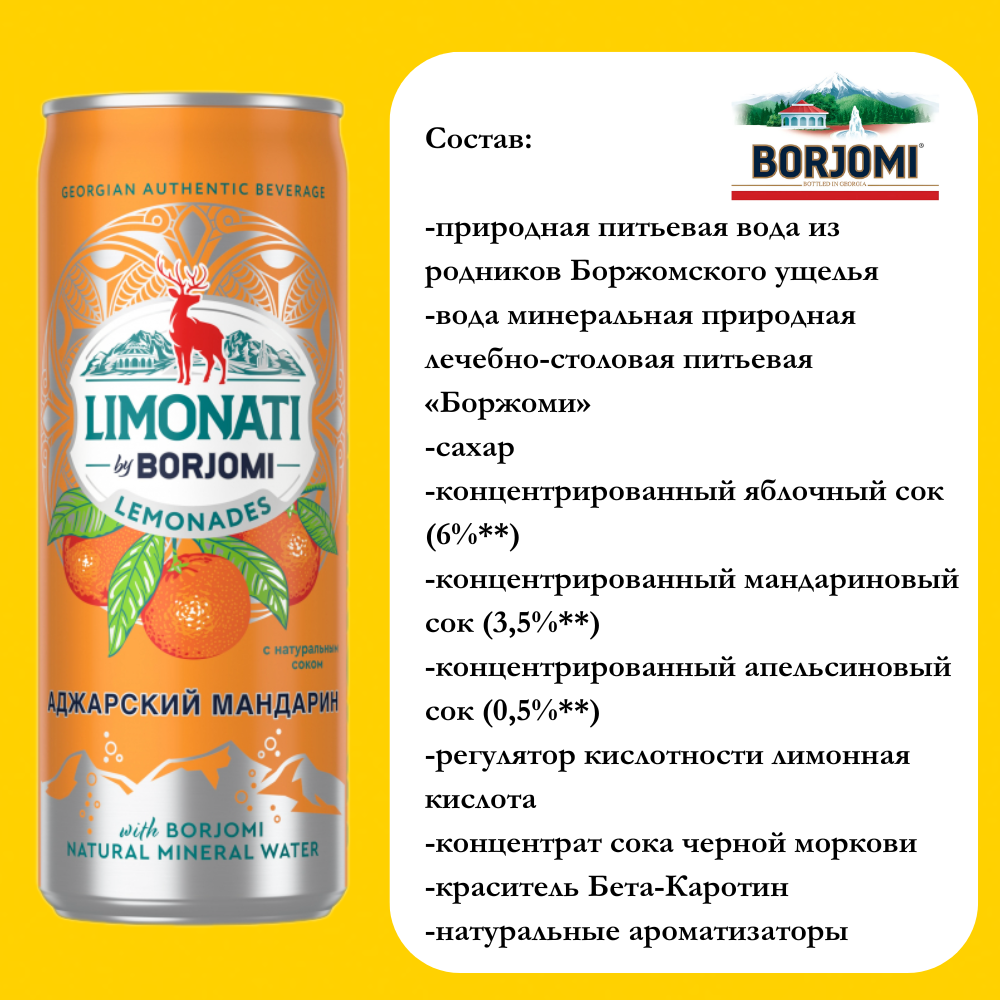 Лимонад Limonati by Borjomi Аджарский мандарин, 0.33 л, металлическая банка, 12 шт. интересное:
