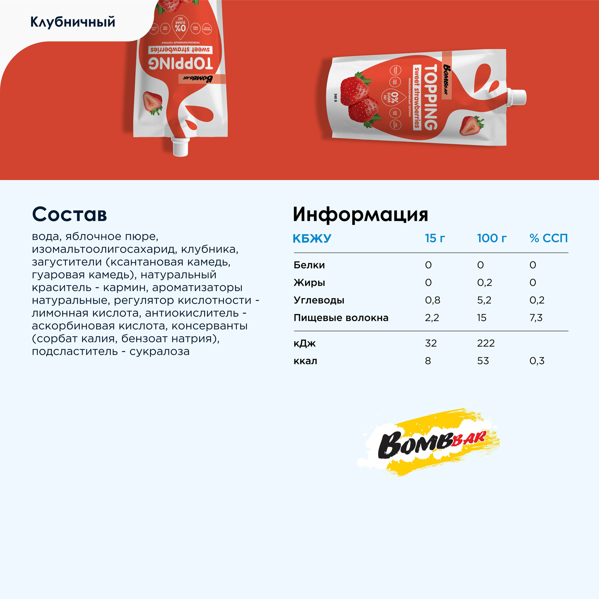 Топпинг Bombbar низкокалорийный без сахара 2шт х 240г, "Клубника" интересное: