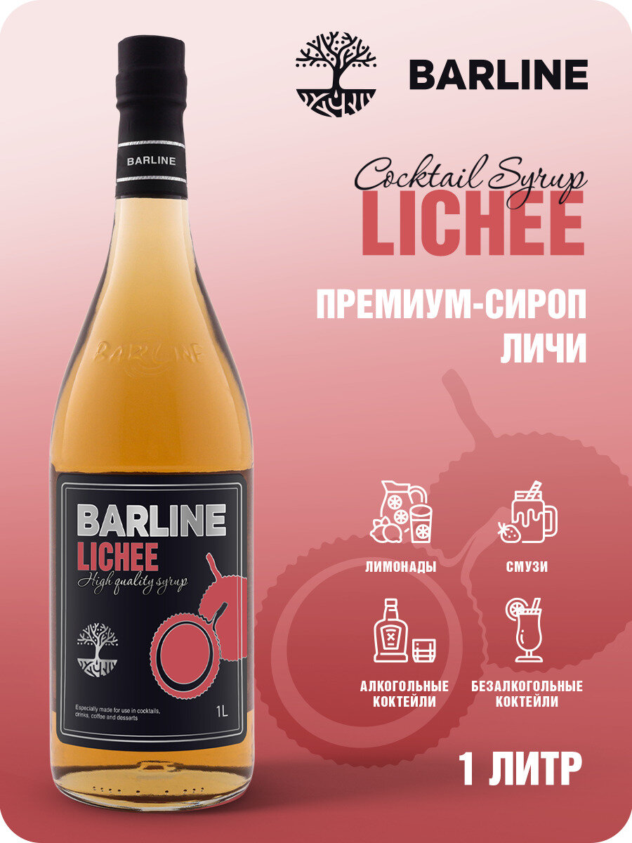 Сироп Barline Личи (Lychee), 1 л, для кофе, чая, коктейлей и десертов, стеклянная бутылка c рассекателем, Барлайн
