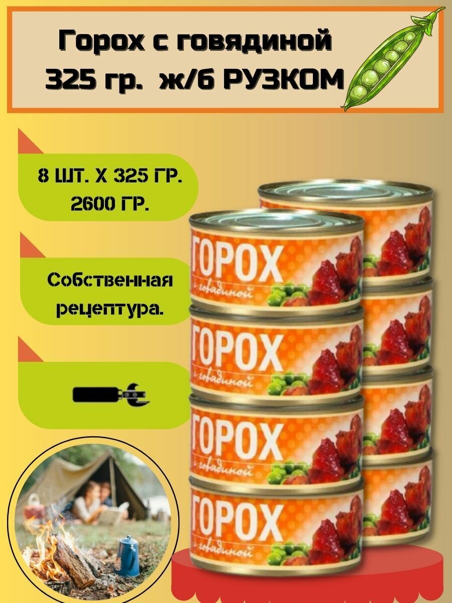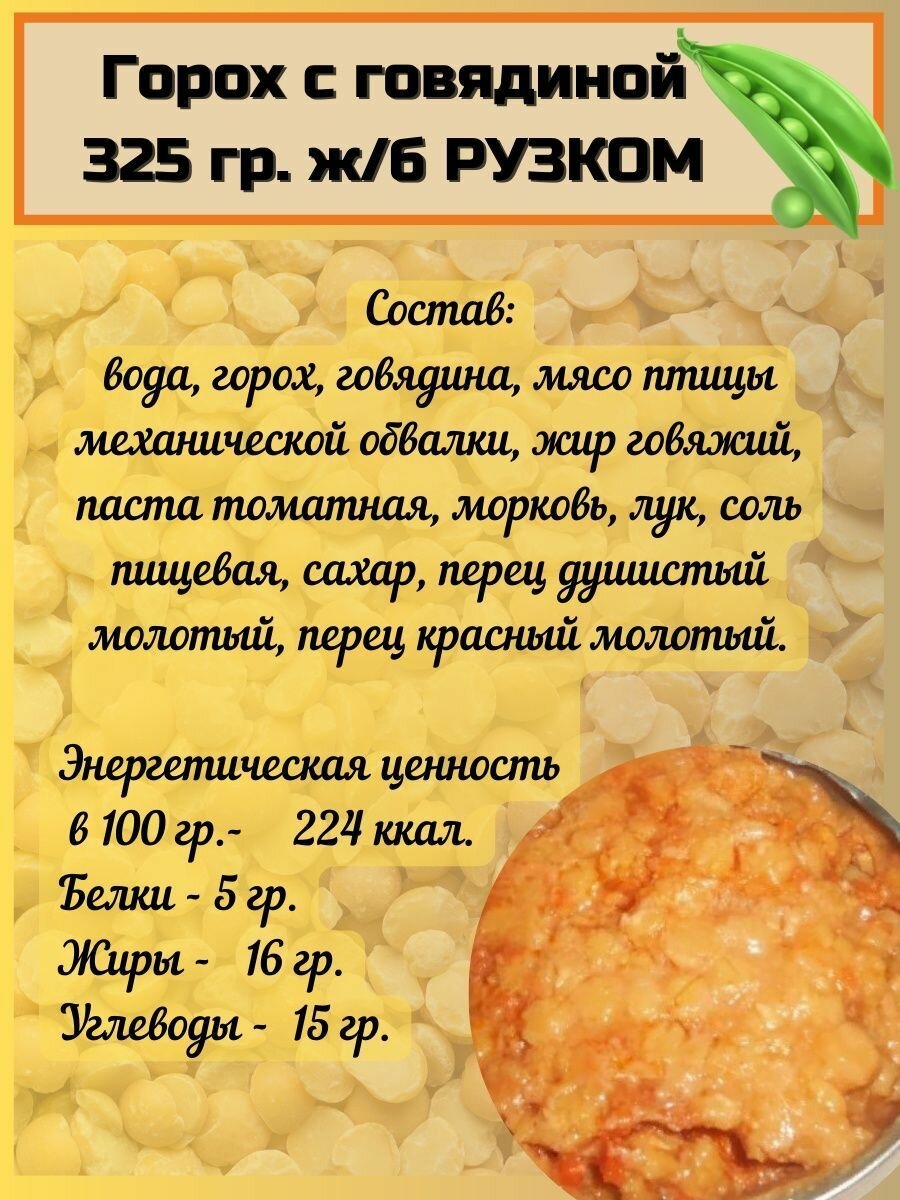 Рузком Горох с говядиной, гороховая каша с мясом 8 штук по 325г интересное: