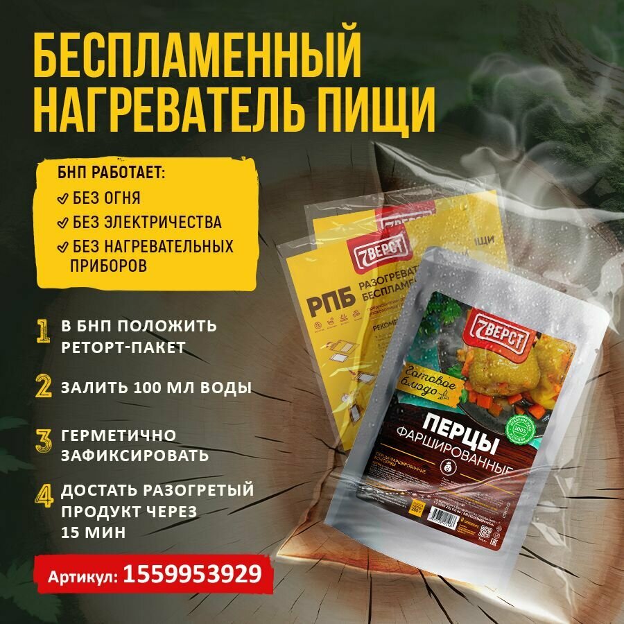 7 вёрст Перцы фаршированные. Готовое блюдо в реторт-пакете для охоты, рыбалки, в поход Набор 15 шт. по 250 г