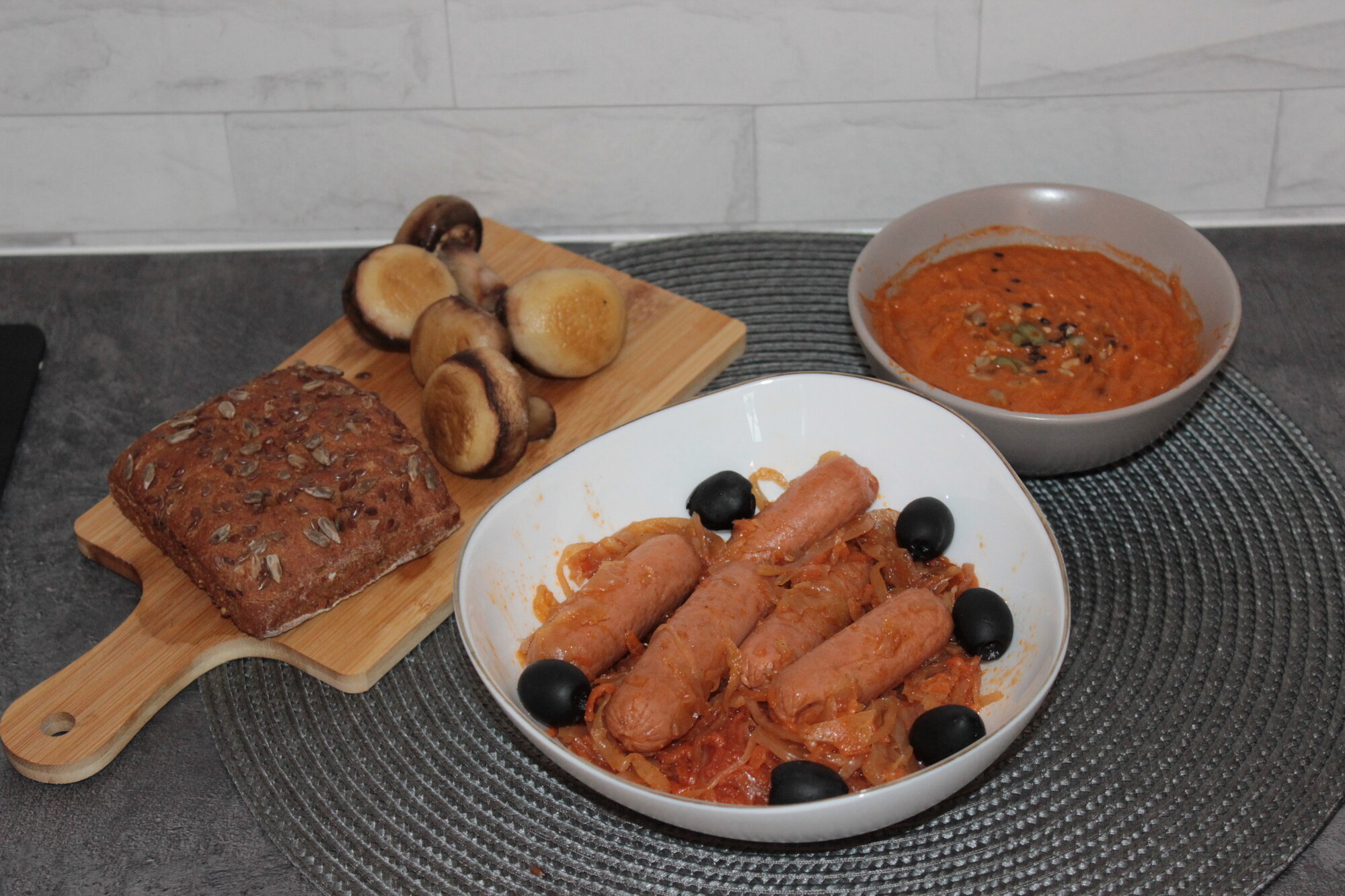 | Состав | Вода, белок пшеничный, масло кокосовое рафинированное, белок соевый (не ГМО), масло подсолнечное рафинированное, специи (мускатный орех, душистый перец, кардамон, имбирь, перец белый молотый), декстроза, усилитель вкуса (дрожжевой экстракт), ароматизатор веганский "Говядина", каррагинан (морские водоросли), соль морская, краситель натуральный «Красный рисовый». Солянка: овощи тушеные (капуста , морковь), масло подсолнечное рафинированное, томат-пюре, трегалоза, соль, специи (тмин молотый, перец черный молотый, лист лавровый). |