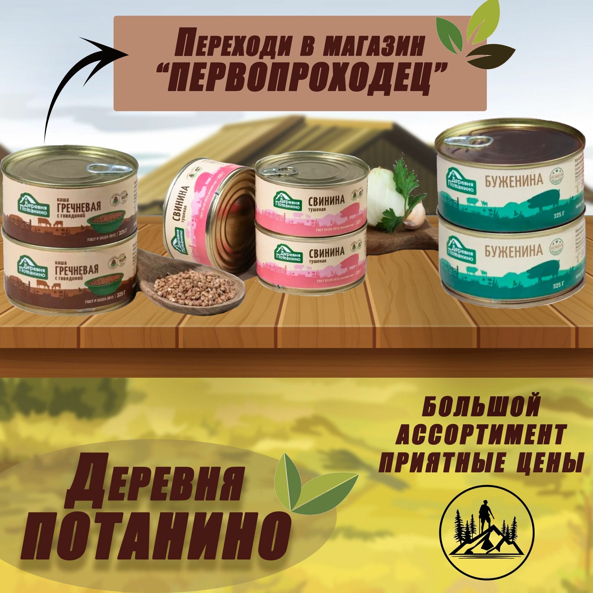 Деревня Потанино Свиной окорок 325 г в поход на рыбалку на дачу на черный день изготовлено 01.06.23 интересное: