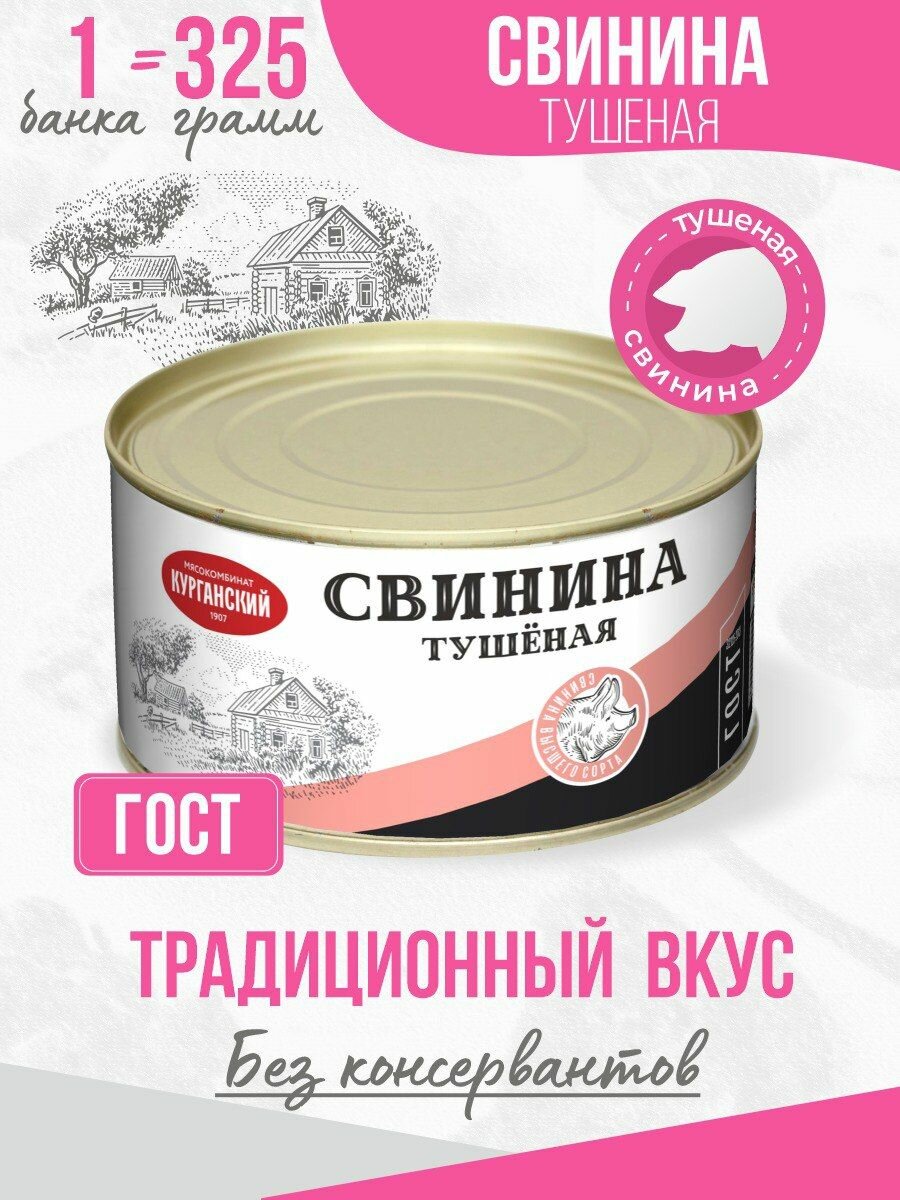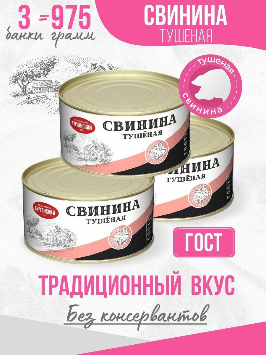 Свинина тушёная, ГОСТ, 325 г, 3 штуки, Стандарт, без ГМО, произведено по госту интересное: