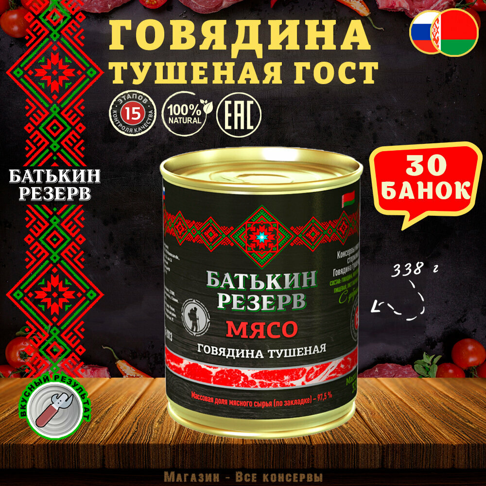 Ниже Вы можете прочитать отзывы на Говядина тушеная Батькин резерв ГОСТ 30 шт по 338 г, ознакомится с подробными характеристиками, посмотреть интересные обзоры и фотографии на Говядина тушеная Батькин резерв ГОСТ 30 шт по 338 г.