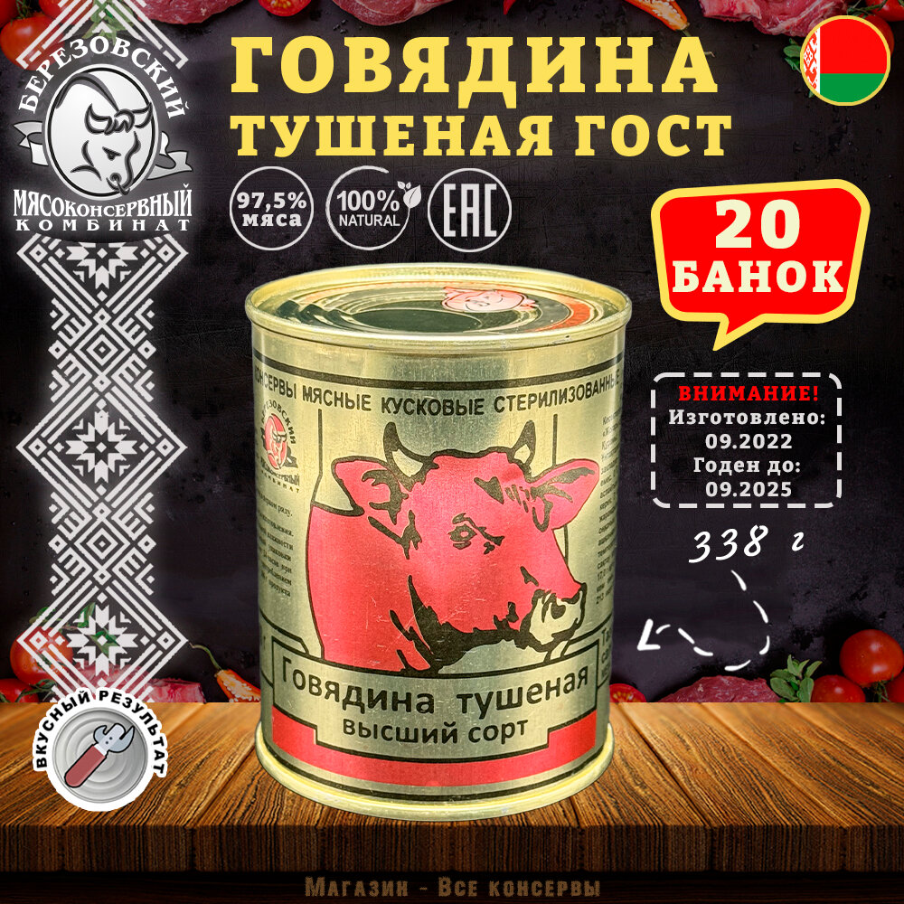 Говядина тушеная Береза, ГОСТ, Тушенка Белорусская, 20 шт. по 338 г интересное: