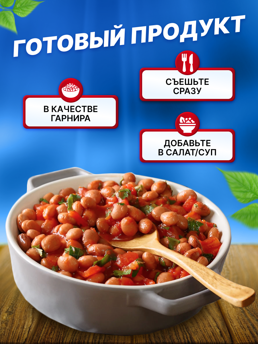 | Состав | фасоль белая, вода, соль, сахар, томатный соус |