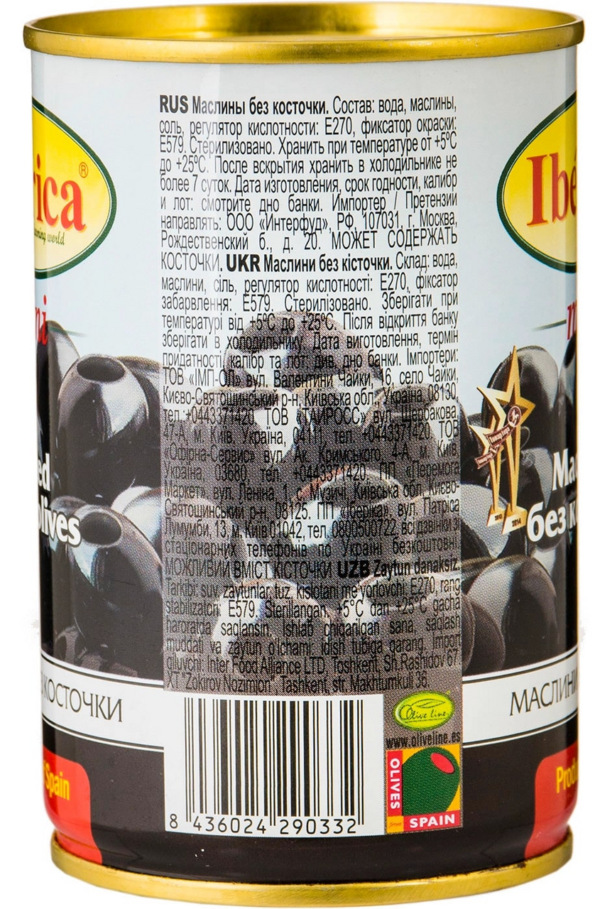 | Состав | вода, маслины, соль, регулятор кислотности E270, фиксатор окраски E579. |