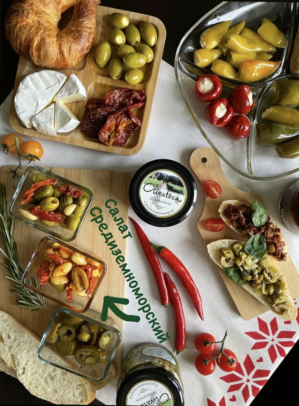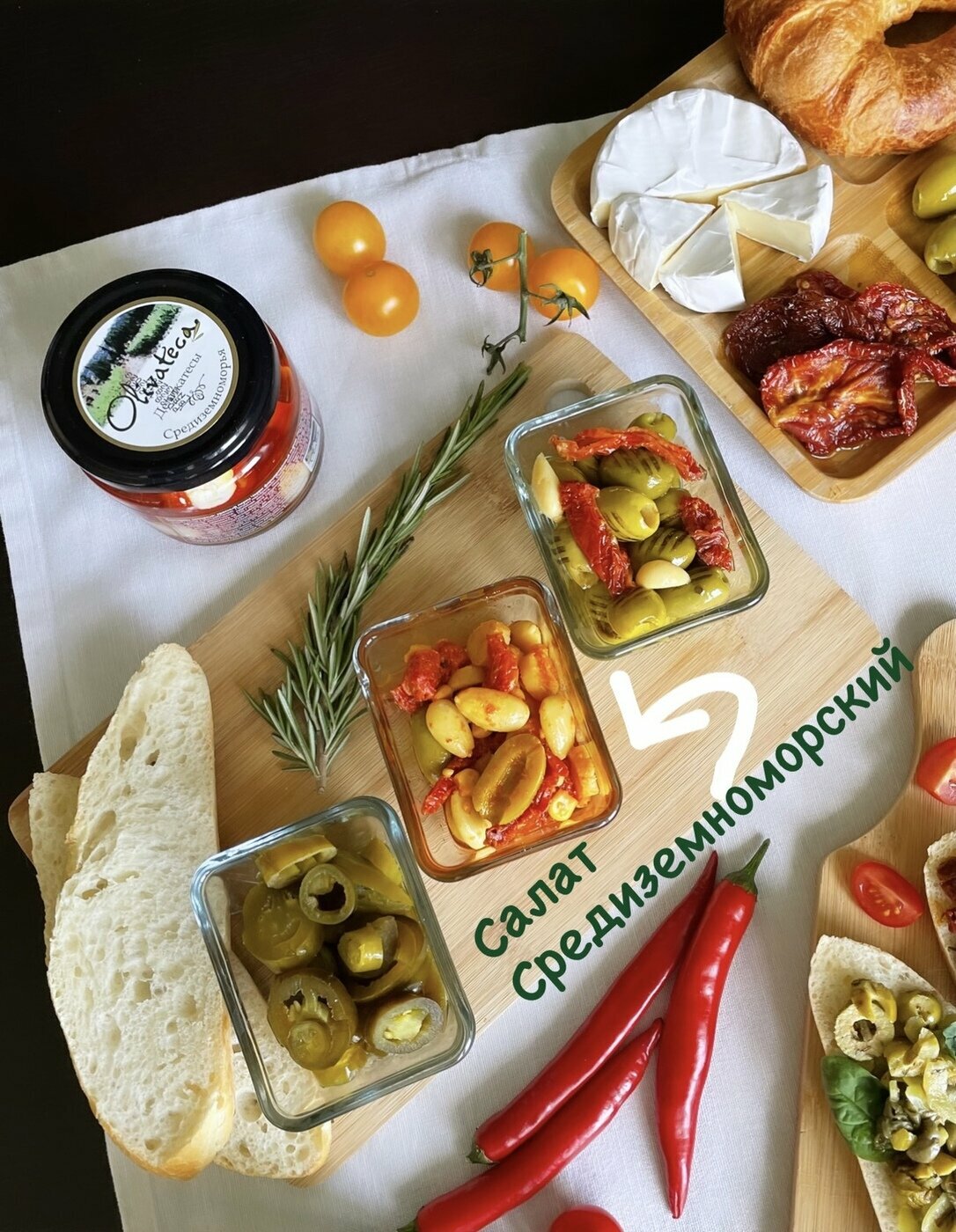 | Состав | оливки зеленые, масло растительное, вяленые томаты, красный перец на гриле, паста из перца, грибы, кукуруза, миндаль, гранатовый сироп, специи, соль, регулятор кислотности: лимонная кислота, пищевой уплотнитель: хлорид кальция, консервант: сорбат калия. |