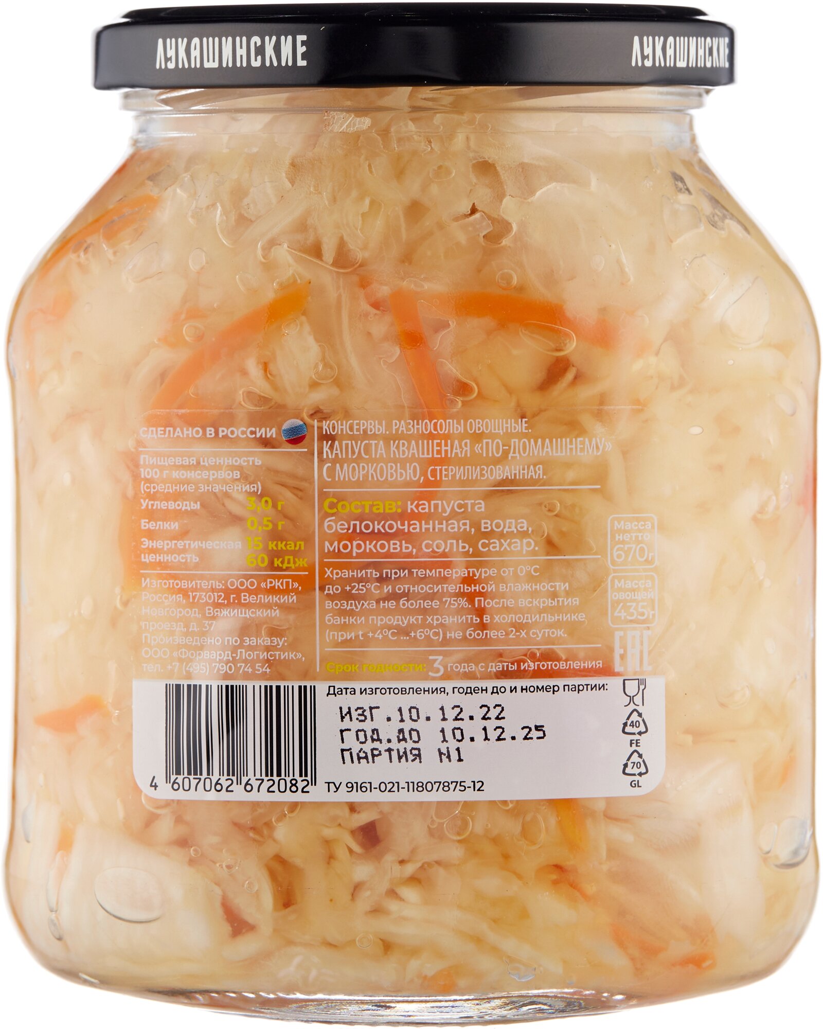 Купить Капуста квашеная "Лукашинские" по-домаш. с морковью 670г. 6шт