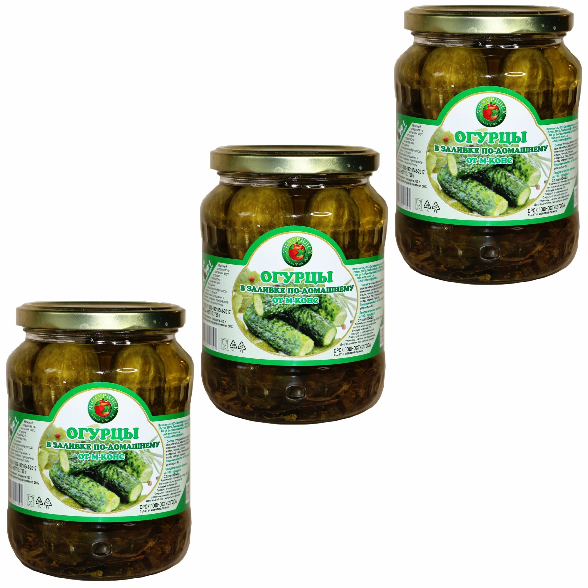 Купить Огурцы в заливке по-домашнему, 3 шт. по 720 г