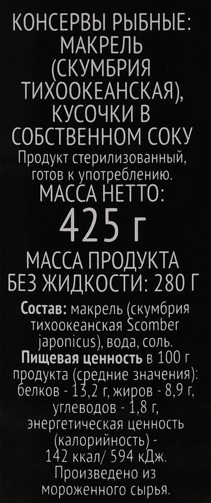 | Вид рыбы | макрель |