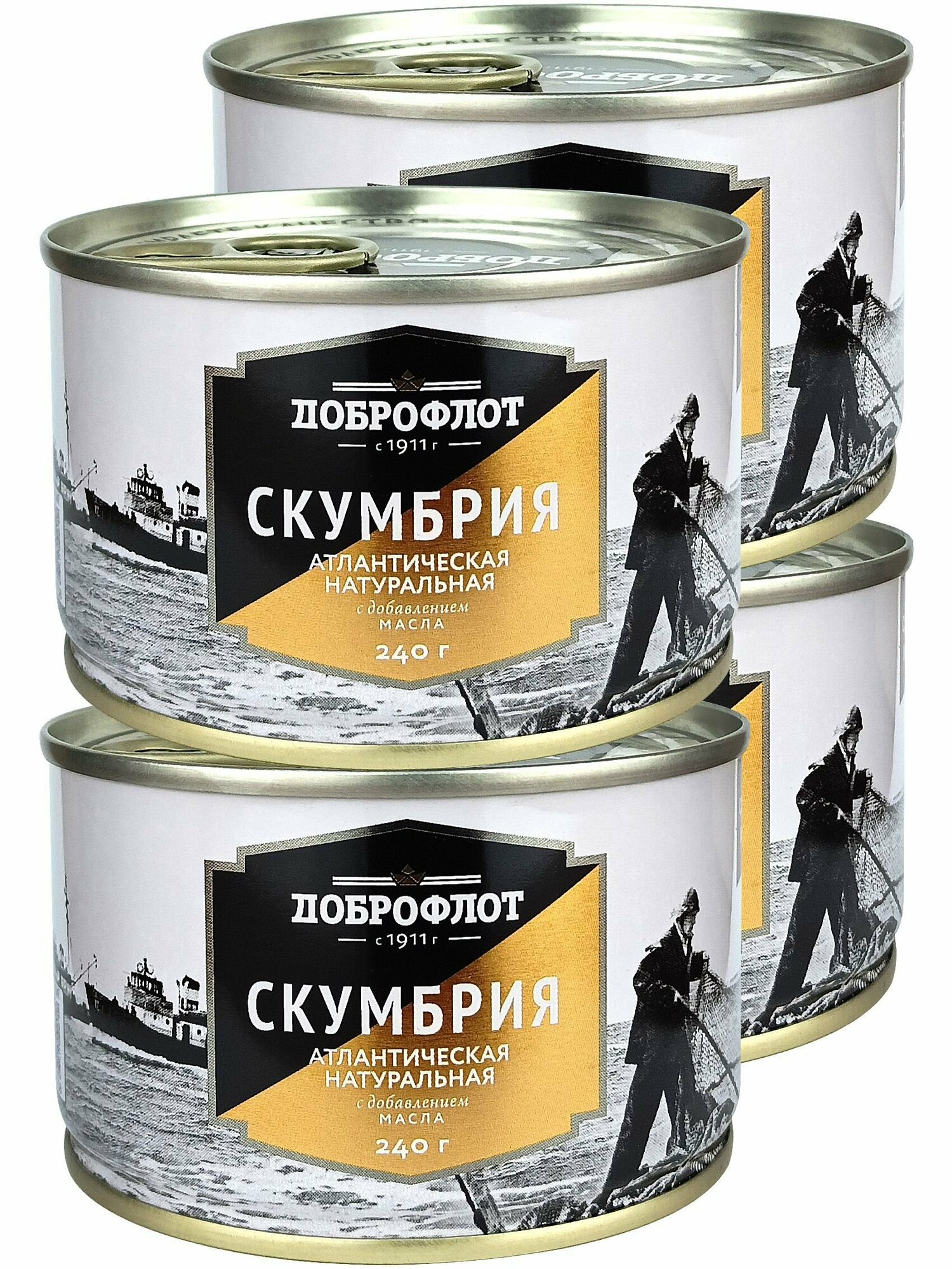 Консервы рыбные "Доброфлот" Скумбрия атлантическая с добавлением масла ГОСТ, 4 шт по 240 г