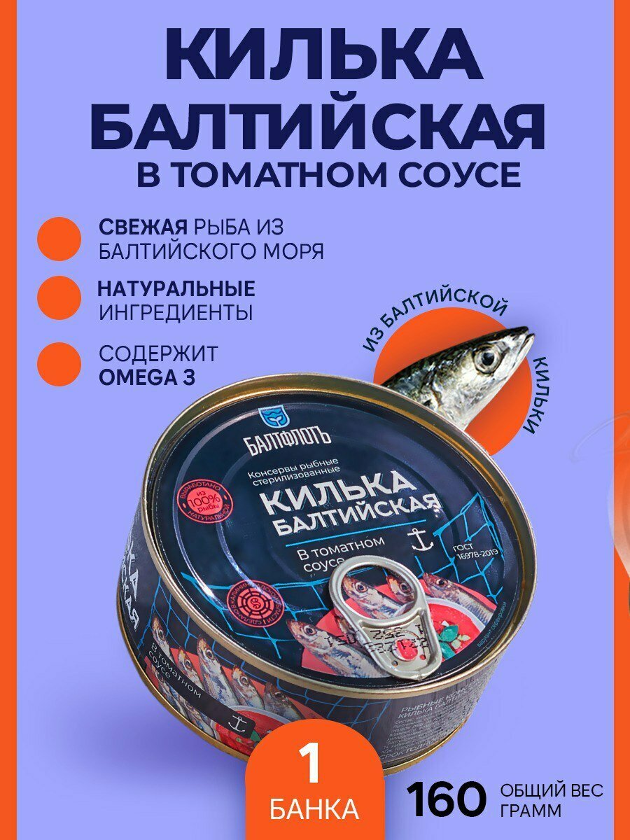 Килька Балтийская Цельная в Томате БалтФлот 3шт, рыбные консервы, килька, рыба в томате интересное: