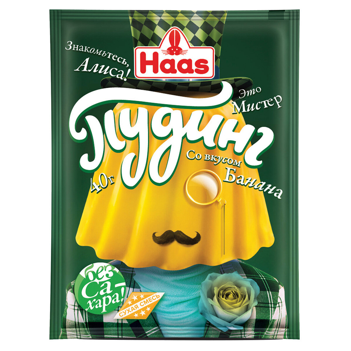 HAAS Пудинг Банановый 40 гр, вкусный десерт быстрого приготовления