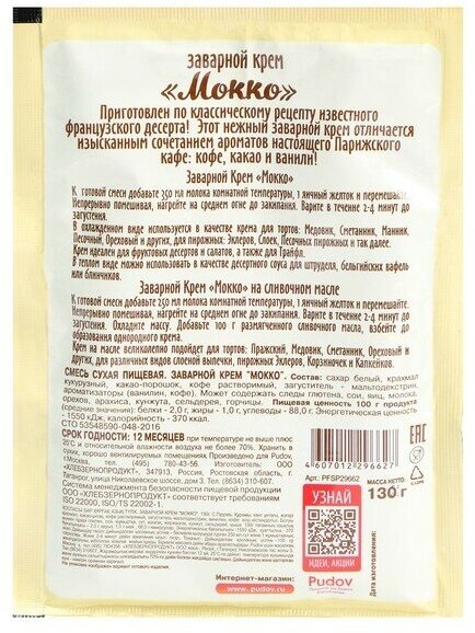 Смесь для десерта Заварной крем "Мокко" С.Пудовъ, 130 г интересное: