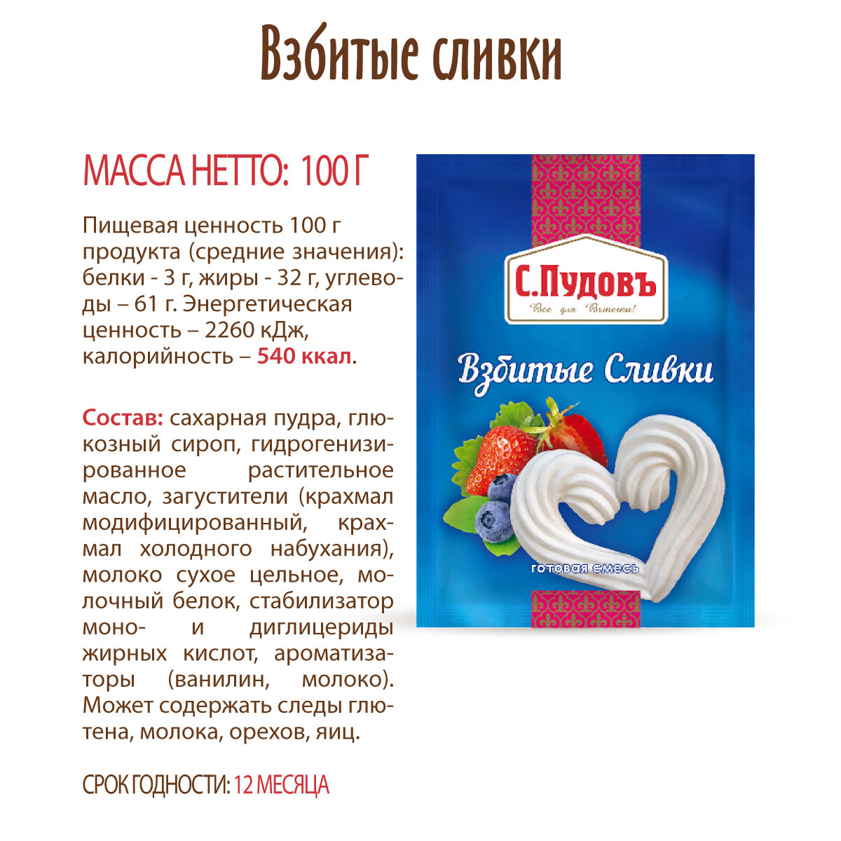 Смесь для приготовления десертов Взбитые сливки, С.Пудовъ, 50 г интересное: