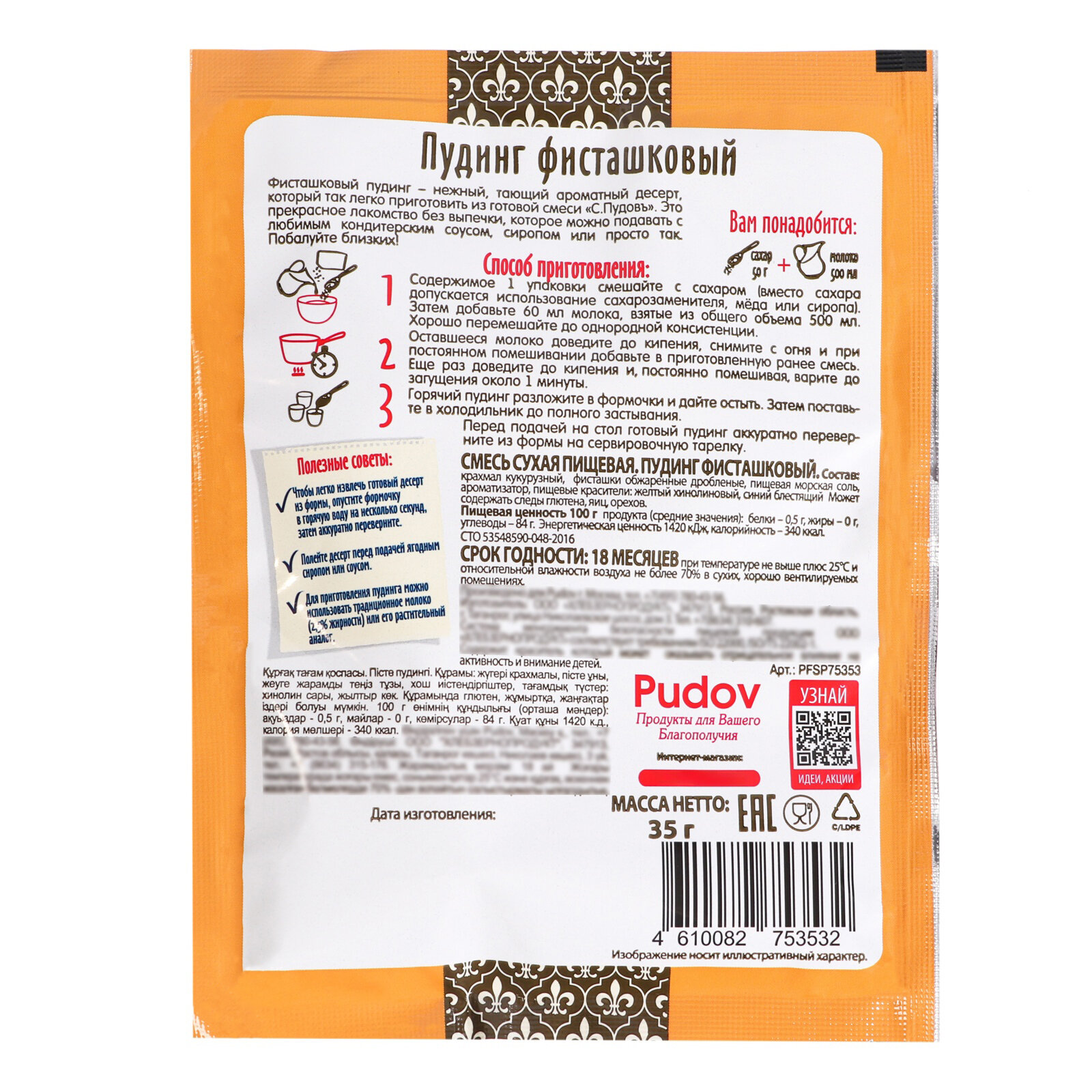 Смесь для приготовления десерта "Пудинг фисташковый " С.Пудовъ, 35 грамм. интересное: