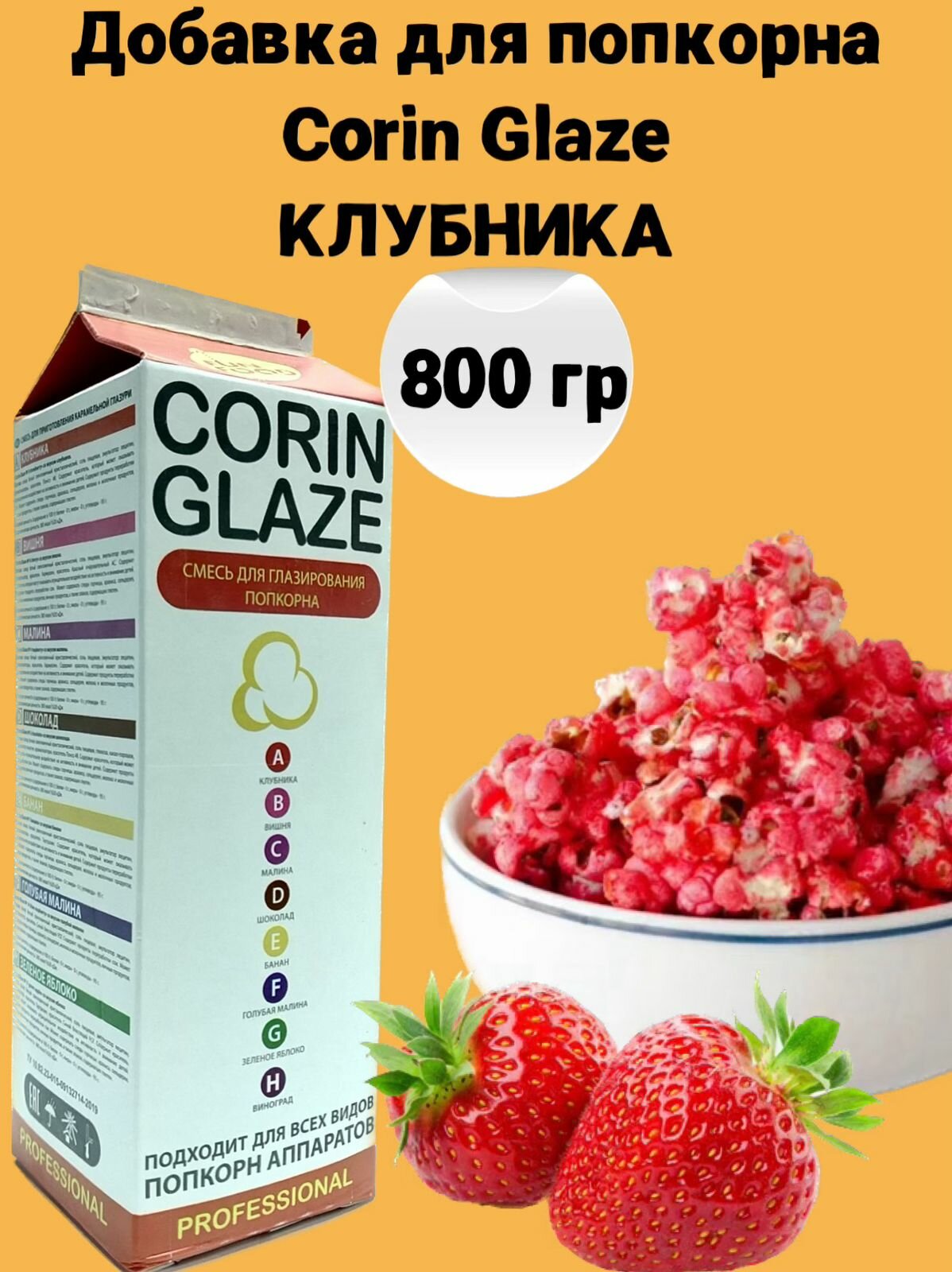 Вкусовая добавка для попкорна Corin Glaze Клубника, 800 г интересное: