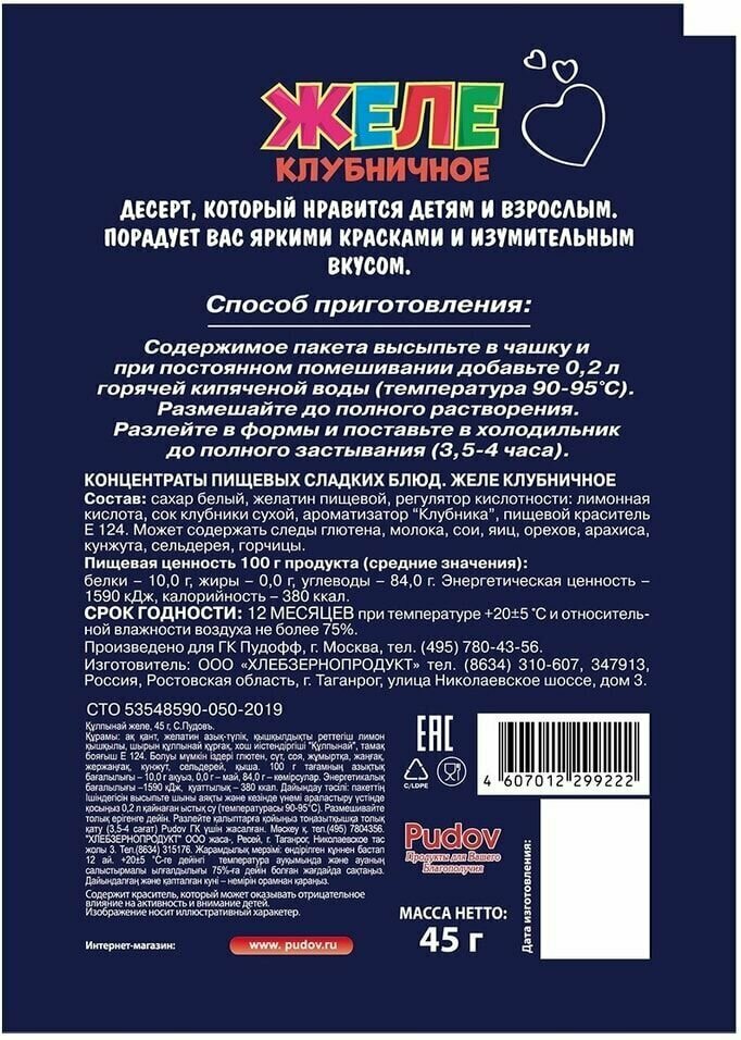 СохранитьГотовая смесь для приготовления Желе С. Пудовъ Клубничное 45 г интересное: